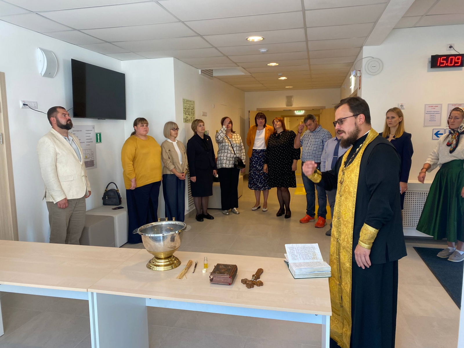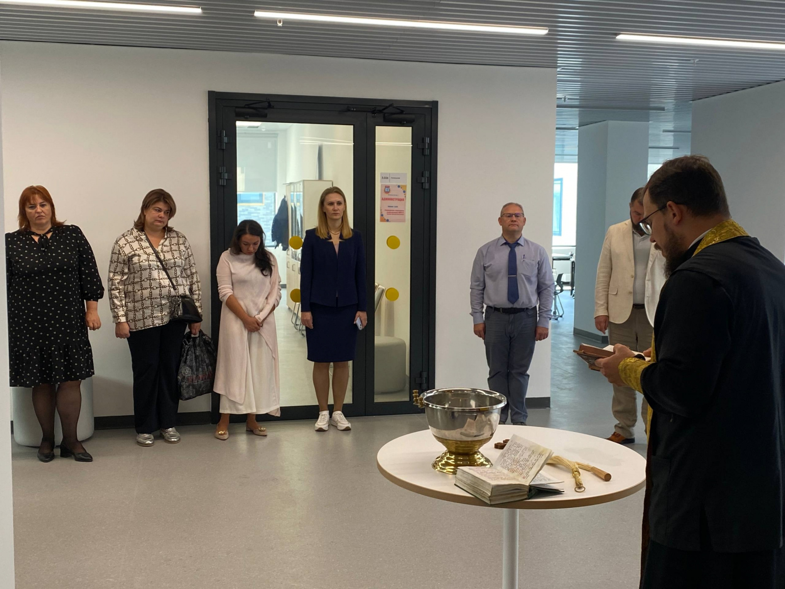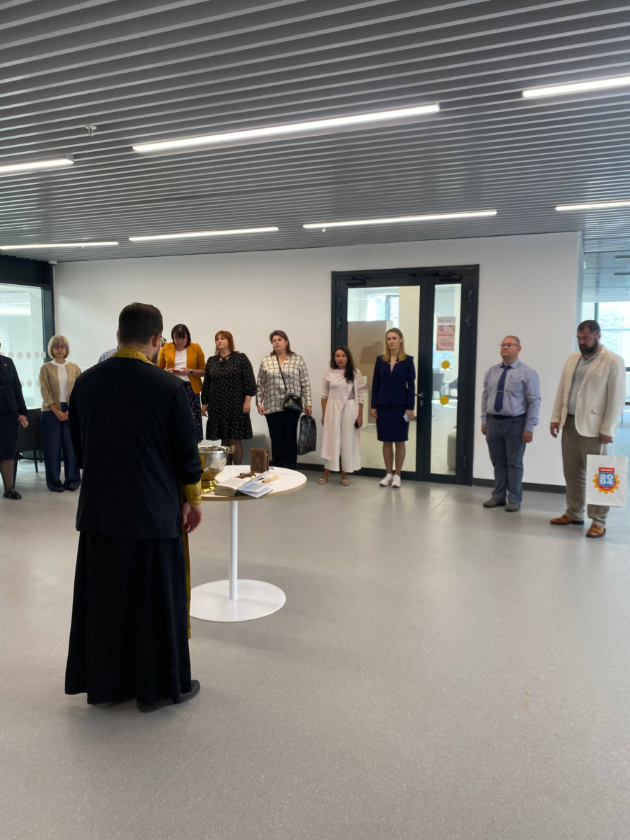 За чином освящения молились директор школы Вержбицкий Юрий Юрьевич, администрация, преподавательский состав образовательного заведения.